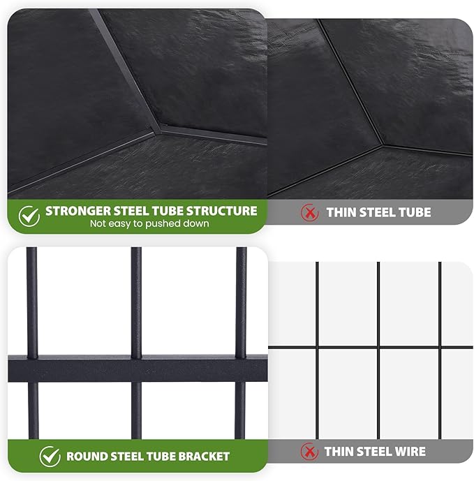 - Detachable Roof: Designed to cover the top and three sides, the roof is fastened with straps for a secure fit. It offers waterproof and sun-resistant protection, with a special coating that prevents cracking, peeling, or fading over time.