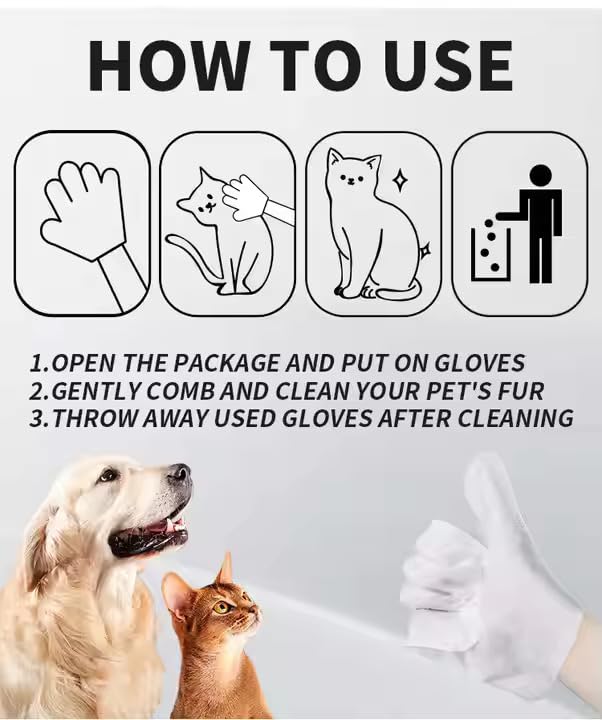 - Pet Cleaning Glove Wipes-Just with one dog cleaning wipe you can easily remove dirt, dander, and odors from your pet's fur, paws,skin, wrinkles, snouts, butts, faces, ears – anywhere that needs a good wipe down between baths.