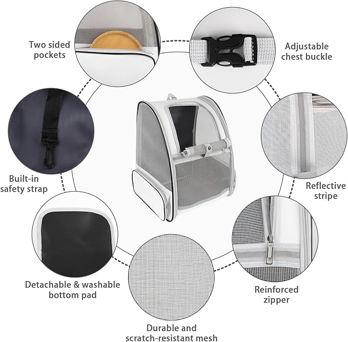 - Ventilated Mesh and Comfortable: Three-sided PVC mesh design ensures excellent air circulation and visibility, you can clearly view the status of pets inside the bag, and pets can also observe the outside. And this cat carrier backpack is firmly structured, providing ample room for your pet to move around