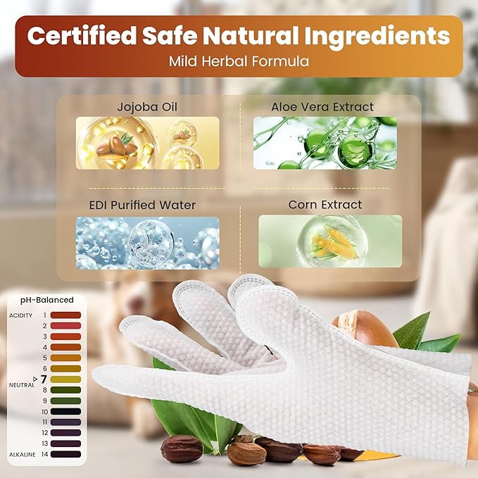 - 【Natural & Safe Formula, Lick-Safe】Cleaning wipes using plant extracts (Jojoba Oil,Didecyl Dimethyl Ammonium Chloride,Decyl Glucoside,Corn Extract,Aloe Extract,Edi Pure Water), pH-balanced, dermatologist-tested and pet safety certified. Pet glove wipes for cats lick-safe ingredients, deeply cleanse while nourishing fur and skin, relieves itchy skin, strengthens resistance, and keeps the coat smooth and shiny. please recognize PURIGREE pet cleaning gloves.