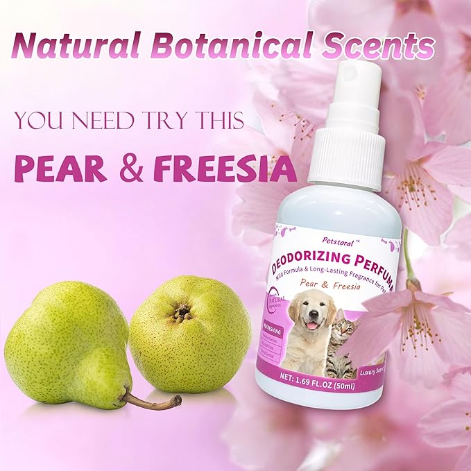 Deodorizing Perfume Spray for Pets, luxury Scent, Long-Lasting Fragrance (1.69 Fl Oz, Pear & Freesia)