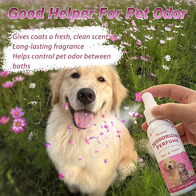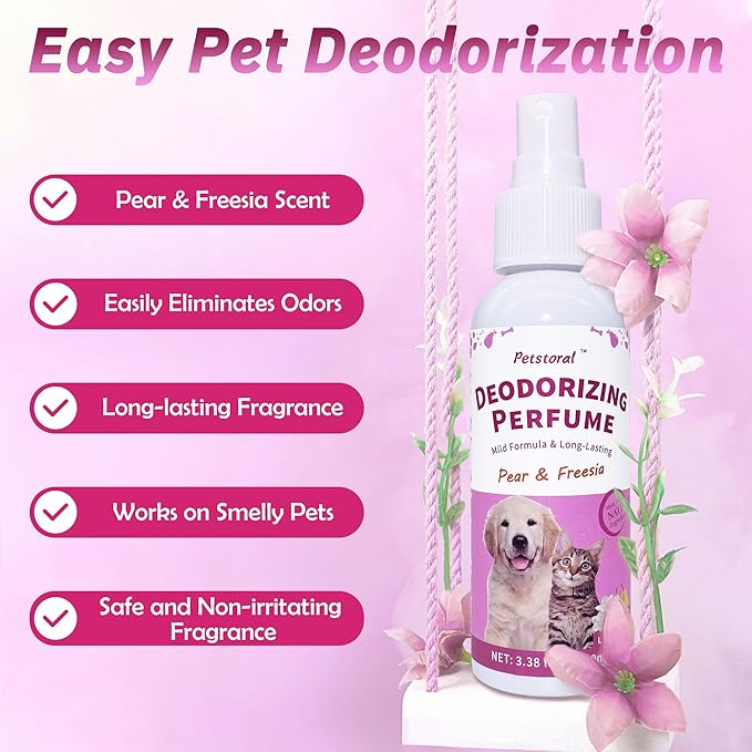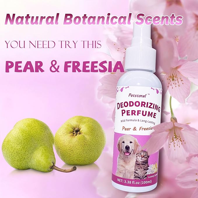 Deodorizing Perfume Spray for Pets, luxury Scent, Long-Lasting Fragrance, 3.38 Fl Oz. (Pear & Freesia)