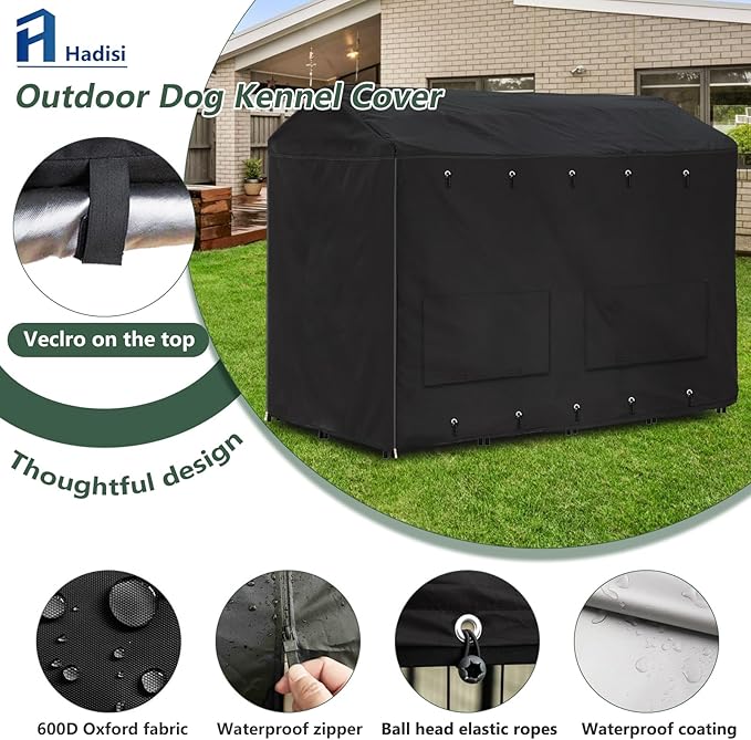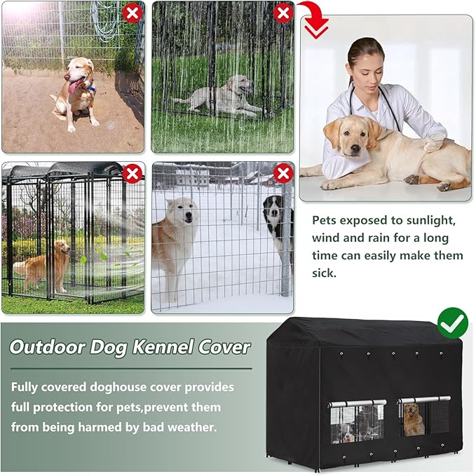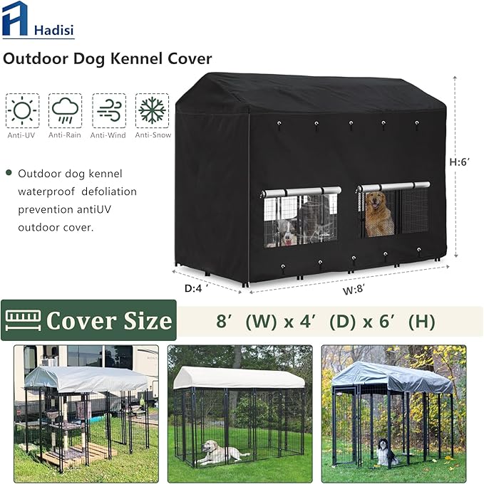 - 【Outdoor Dog Kennel Cover】- Size is8'Dx4'Wx6'H.Suitable for most brands dog kennel.Please note that:Cover only.(patent pending)