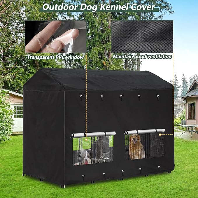 Outdoor Dog Kennel Cover 8'Dx4'Wx6'H Full Coverage Windproof Anti-UV.with Transparent PVC Window and Breathable Mesh.Waterproof Dog Kennel Cover for Multiple Brands of Dog Kennels,Cover Only.(Black)