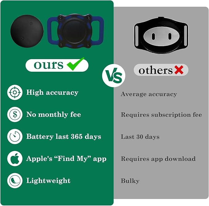 - Subscription-Free Service: This dog tracker pet location tracker with collar holder for dogs connects effortlessly with iOS 'Find My' for seamless tracking. Ensure your iOS device is updated. Note: Not supported by Android