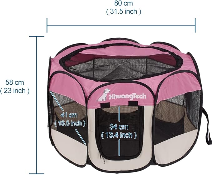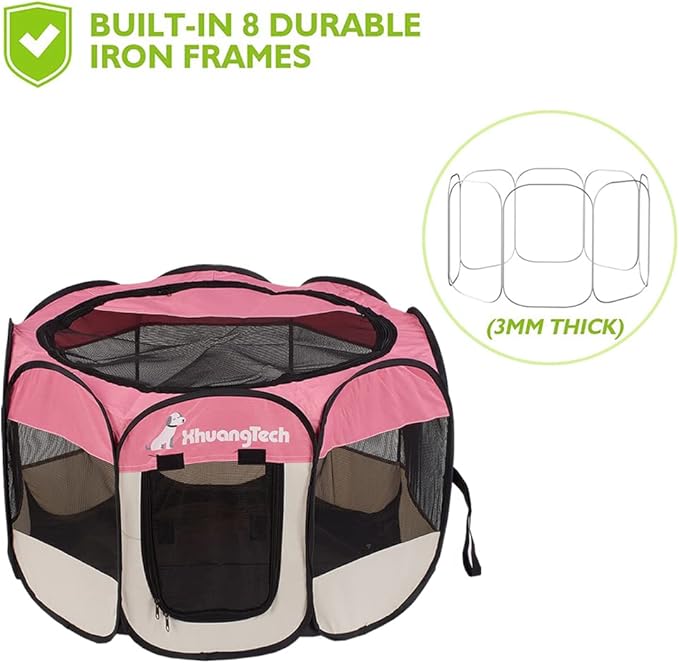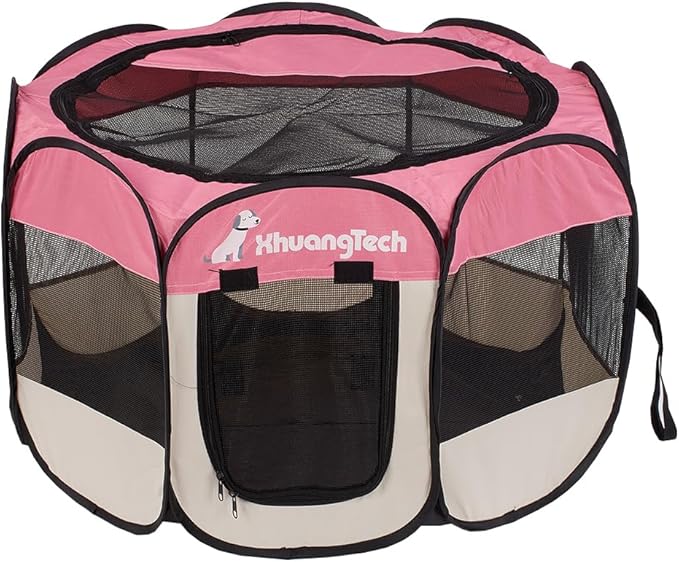 Foldable Pet Dog Playpen, Pop Up Portable Cat Playpen, Indoor/Outdoor for Kitten Puppy Play Pen, Cats Crate Tent with Carrying Bag, 600D Oxford (Pink + Beige, Medium (31.5"x31.5"x23"), 8)