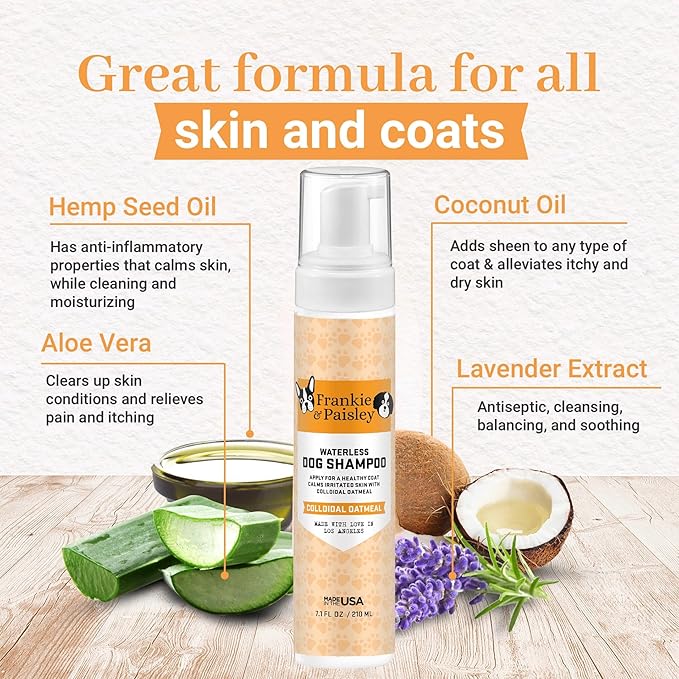 Frankie & Paisley Waterless Dog Shampoo, Natural Dry Shampoo for Dogs or Cats No Rinse Required with Natural Colloidal Oatmeal for a Deodorized Puppy - Foaming 7.1 fl. Oz