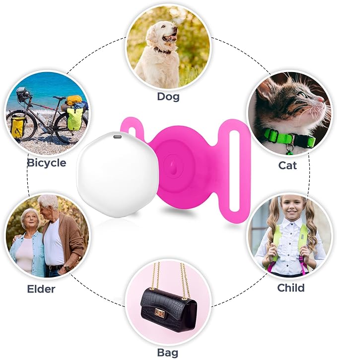 GPS Tracker for Dogs, Mini GPS Pet Tracker with Silicone Cover, IPX8 Waterproof GPS Tracker for Kids,No Monthly Fee,Work with Apple Find My(iOS Only),Dog Tracker Finder Tracker Pets(YPink-L)