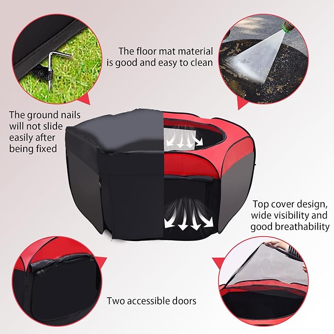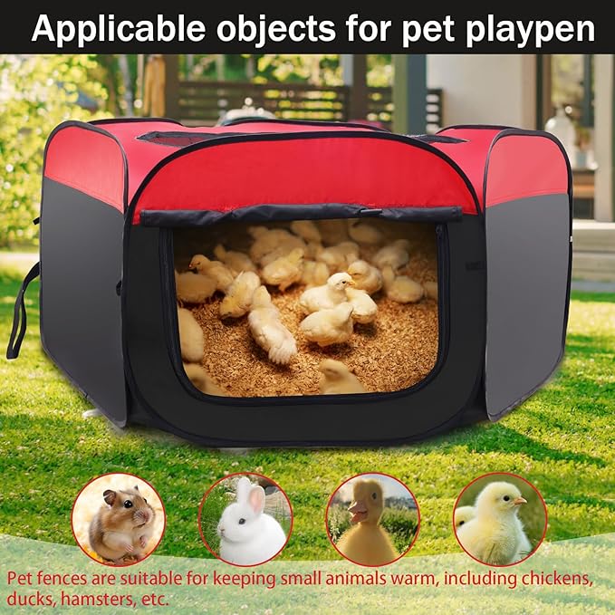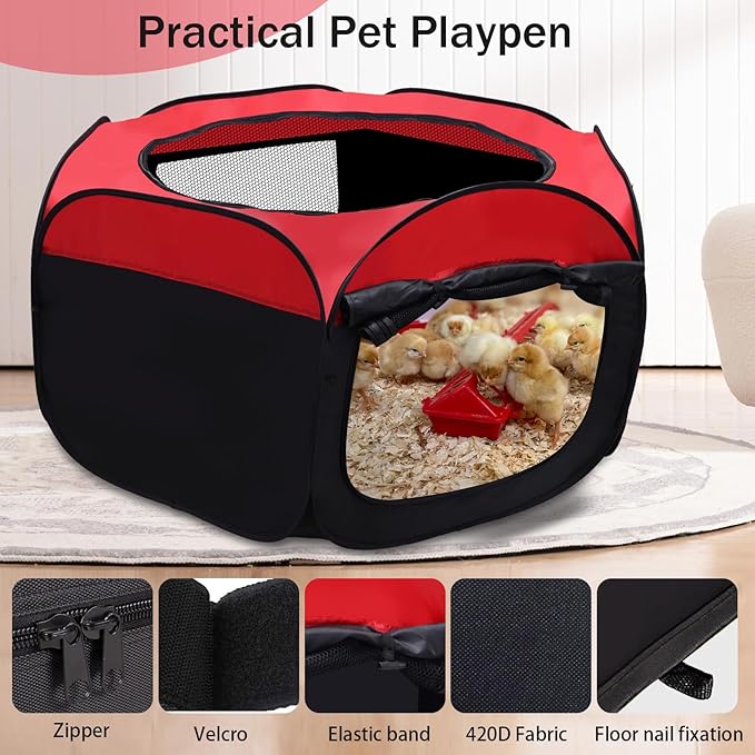 Foldable Brooder Box for Chick,Chick Fence Portable Dog Playpen Cage with Floor Mat, Large Dog Tent Oxford Fabric Cage Indoor/Outdoor, Red and Black