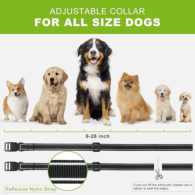- 【Comfortable for All Sizes of Dogs】 The stop barking dog collar is suitable for dogs of any breed weighing between 8 to 120 pounds, adjustable strap fits pets with a neck size up to 25 in. This no shock bark collar is designed with an adjustable skin-friendly soft nylon, ensuring that your dog finds it comfortable and durable. The double reflective stitching on the collar increases visibility and provides extra safety for your dog on night walks.