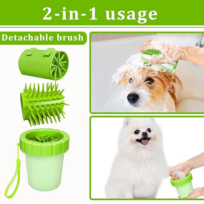 - 【Unique 2-in-1 Design】The dog paw cleaner has a detachable design, the silicone soft pad can be removed from the cup and used as a pet grooming and bathing brush. This innovative design increases the versatility of the product and makes it more flexible to use.