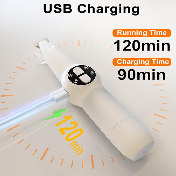 - 【Cordless Rechargeable Pet Trimmer】Say goodbye to tangled cords and enjoy the convenience of cordless grooming. Our dog grooming kit features a built-in rechargeable battery, eliminating the need for constant battery replacements. Simply charge the trimmer using the included charging cable, and it will be ready to use whenever you need it.