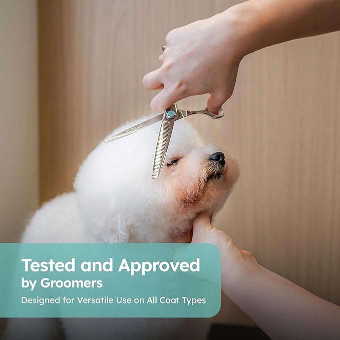 - 【Tested by Groomers with years of experience】Unlike mass-produced, low-quality alternatives, K9 Shears is a new brand backed by years of experience in crafting premium scissors. Our shears make every grooming session easier and stay sharp after multiple uses. You'll immediately notice the difference in performance. These shears are Ideal for adding volume and shaping fluffy styles around the head, face, legs, and tail — perfect for breeds like Bichon and Poodle.