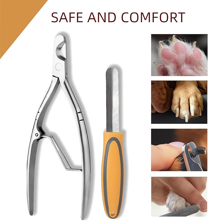 Professional Pet Nail Clippers with Safety Guard Nail File 2-in-1 Wide Open Grooming Tool for Dogs & Cats, Sharp Stainless Steel Trimmer for Small/Medium Pets, Ergonomic Handle for Precise Clipping