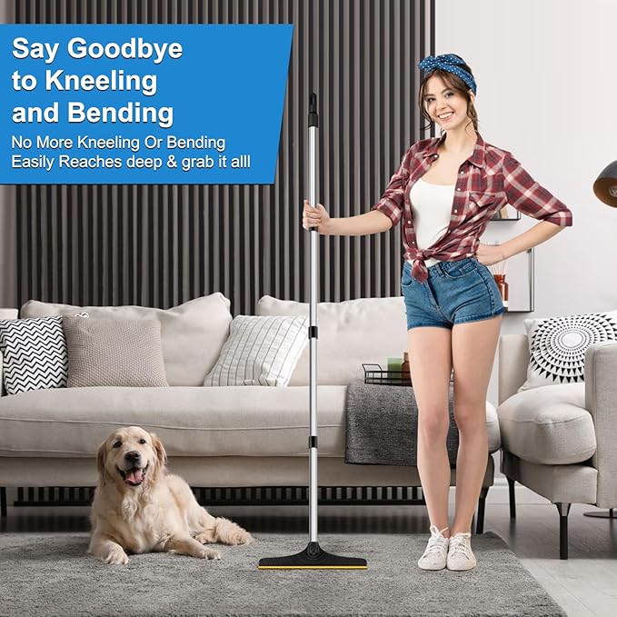 - Effectively Cleaning Pet Hair : This carpet scraper for pet hair efficiently grabs and eliminates pet hair, effortlessly removes fur and lint from your rug or carpets.The long handle and fixed metal head allow you to remove pet hair from any corner or space with little effort. The dog hair remover is reusable, this rug rake can save your costs and bring convenience to your life. The carpet hair removal tool makes every pet owner's life easier and won't cause damage to the cleaning surface.