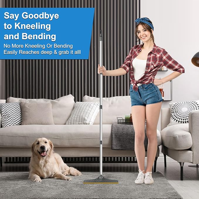 - Effectively Cleaning Pet Hair : This carpet scraper for pet hair efficiently grabs and eliminates pet hair, effortlessly removes fur and lint from your rug or carpets.The long handle and fixed metal head allow you to remove pet hair from any corner or space with little effort. The dog hair remover is reusable, this rug rake can save your costs and bring convenience to your life. The carpet hair removal tool makes every pet owner's life easier and won't cause damage to the cleaning surface.
