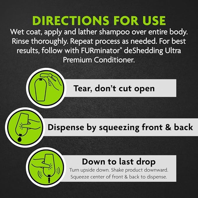 FURminator DeShedding Shampoo Squeezable Pouch,16 Fluid Ounces, Moisturizing Deshedding Shampoo for Dogs in Self-Sealing,Spill-Resistant Pouch Helps Reduce Excess Shedding and Nourishes Skin and Coat
