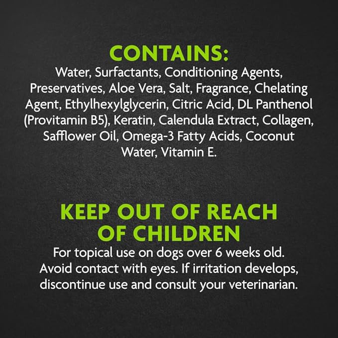 - ENRICHED FORMULA: Enriched with Omega-3 & -6 fatty acids, this moisturizing formula promotes healthy skin and coat and is formulated without parabens & chemical dyes.