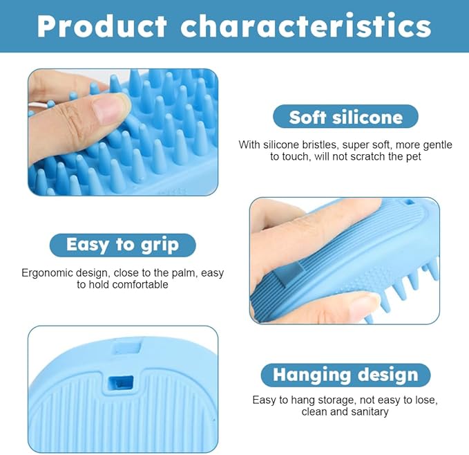 - 【SILICONE BRUSH】Dog bath brush is made of silicone bristles, super soft, and evenly distributed, which provides a more gentle touch and will not scratch your dog, allowing your pet to enjoy a very comfortable shower.