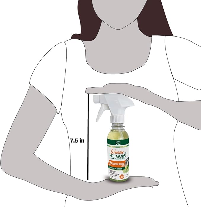 - DIRECTIONS. 1) USE Señor Dog Air Freshner Oil combined with daily walks and calm behavior training. 2) CLEAN the soiled area as regularly (do not use bleach) and let it dry. 3) TURN Nozzle of WeeWee No More! Spray to “STREAM” position and apply in a wide area. Start doing 1 shot every 5 feet. No scrubbing required. 4) AIR the room for 60 minutes. The spray has an immediate intense odor that shifts into a Citrus scent within minutes. 5) APPLY daily for one week. During weeks 2 and 3 reapply every 3 to 7 days. Most soiling behaviors are broken within 21 days. Each pet is unique and not all respond in the same way.
