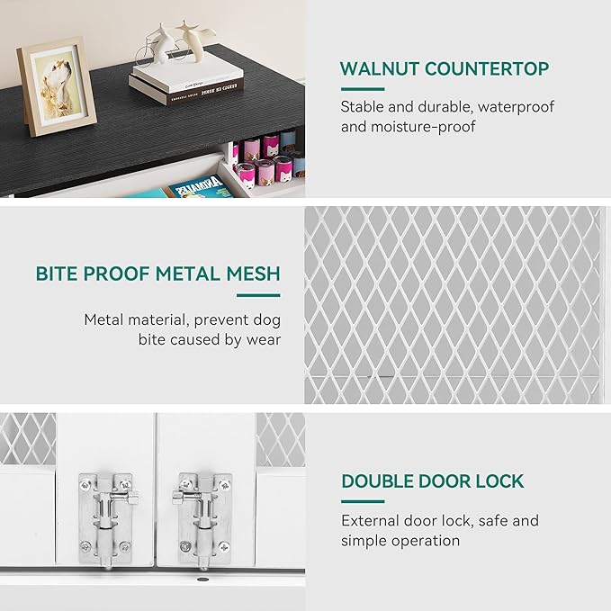 - 【2 Sliding Latches】YITAHOME dog crate furniture is equipped with 2 sliding doors, the sliding design can prevent the dog from running out while giving the dog a safe resting environment.