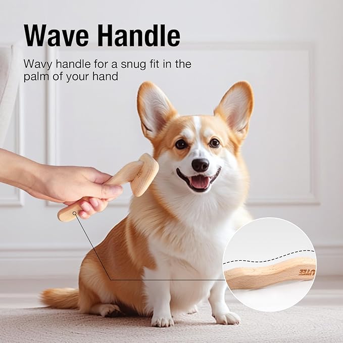 - Ergonomic Beechwood Handle: Dog hair brush wave-shaped handle design better fits the human palm, offering a more comfortable grip and reducing hand fatigue during prolonged use, while also providing precise control during pet grooming;