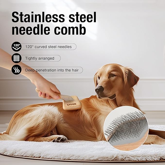 - Unique Design: The UTEE pet grooming brush, with its unique square design and natural beechwood texture, effortlessly blends into your minimalist home decor. Slicker brush is not just a grooming tool but a piece of art that adds a touch of nature and warmth to your pet's life in a minimalist living space.