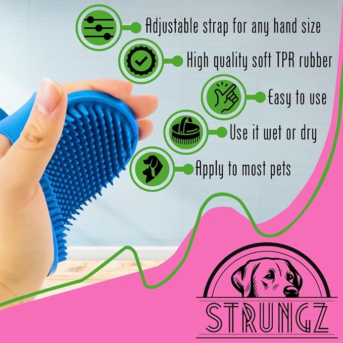 - 💪[Durable & Safe Material]✅ The STRUNGZ pet grooming brushes are made of high quality TPR rubber material. Our dog shampoo brush design is soft and smooth, it won't hurt your pet's skin.