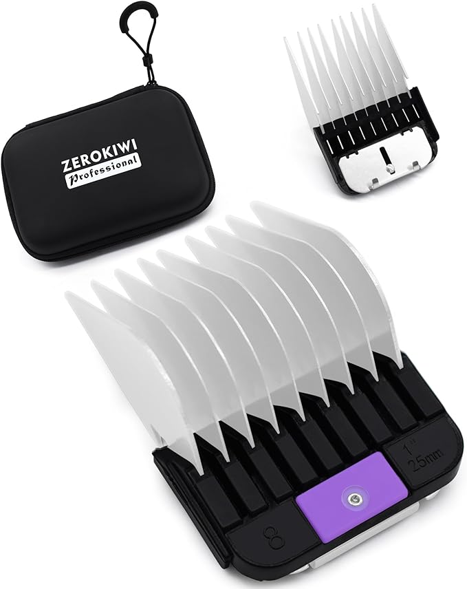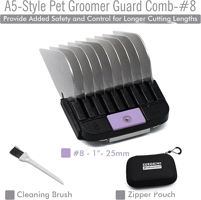 Professional A5 Style Animal Clipper Stainless Steel Color-Coded Snap-on Attachment Guard Guide Comb, 1/8"-1" Compatible with Wahl KM Series Oster A5 Andis Detachable Blade Pet Groomers (#8 - 1")