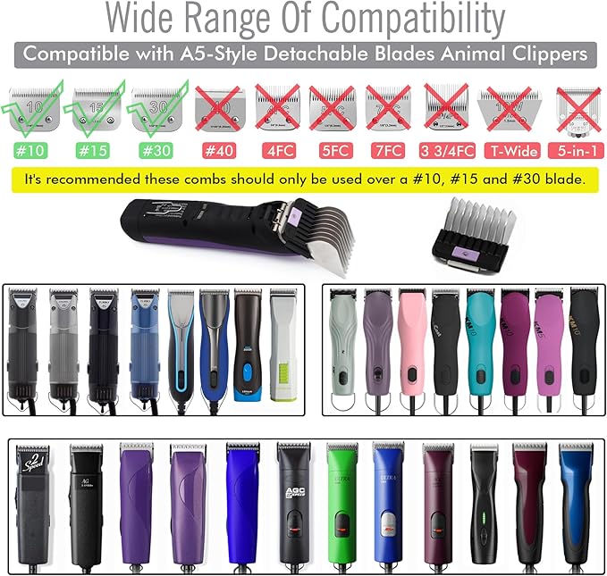 - Compatible with Oster A6, Golden A5, Turbo A5, Andis AG, BG, AGC, BDC, DBLC, FHC, MBG, SMC, SMX, BGR and KM2, KM5, KM10, KM Cordless, Thick Coat Clipper, SS Pro, Power Grip, etc.
