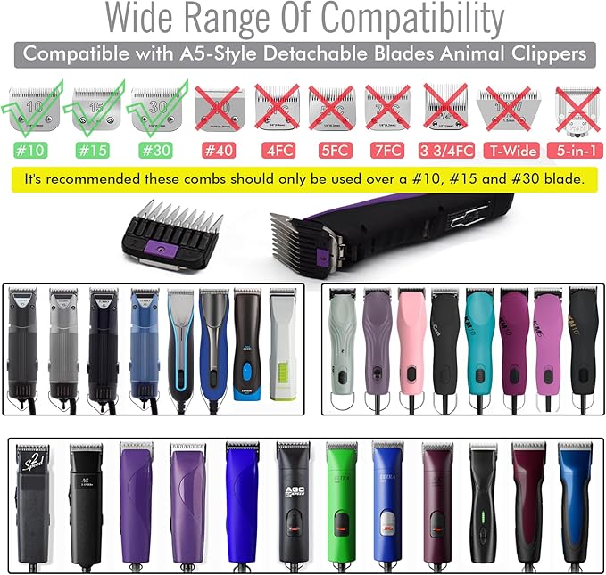 - Compatible with Oster A6, Golden A5, Turbo A5, Andis AG, BG, AGC, BDC, DBLC, FHC, MBG, SMC, SMX, BGR and KM2, KM5, KM10, KM Cordless, Thick Coat Clipper, SS Pro, Power Grip, etc.