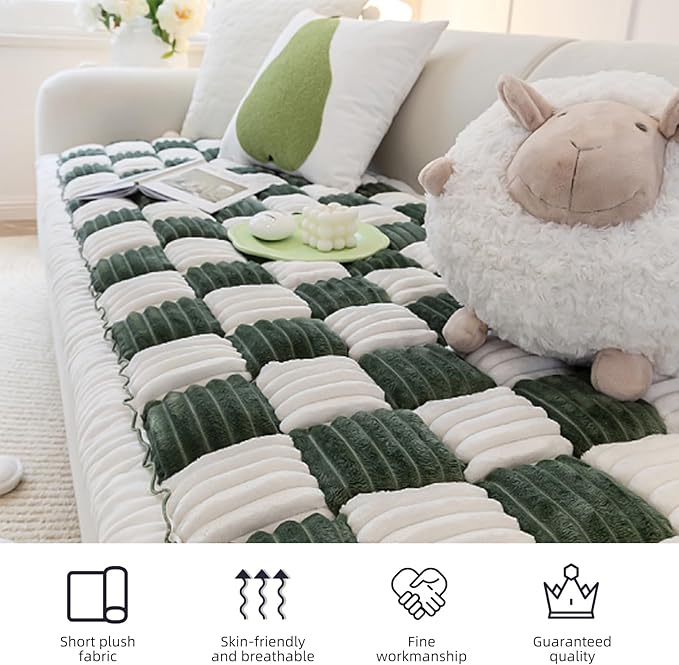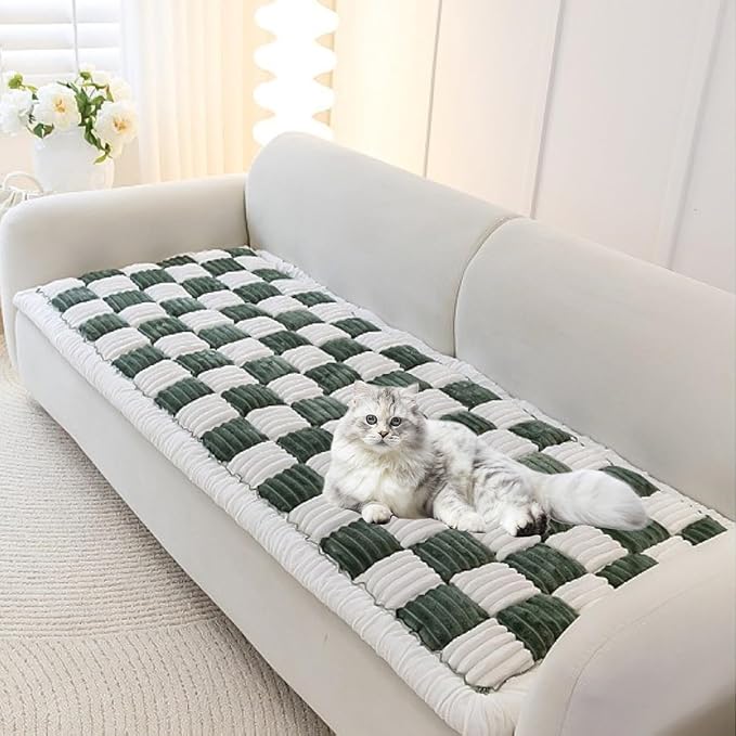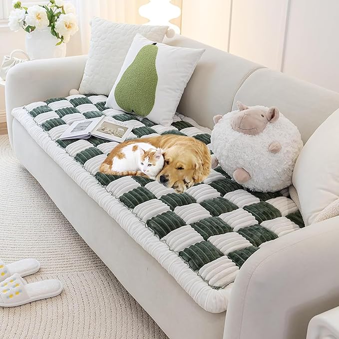 - Luxurious Comfort: Handcrafted from dense flannel fabric, our couch cover blanket ensures thickness, skin-friendliness, and durability without any hair loss or color fading. Filled with high-resilience PP cotton, these covers stay fluffy and soft even after prolonged use. The large plaid square design of these sofa cover for dogs releases your fatigue, providing a cozy spot for your furry friends to relax