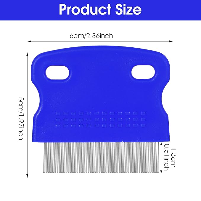 - Size Information: The cat flea comb size is 5*6cm/1.97*2.36in, Comb teeth: 1.3cm/0.51in, can be easily operated around the pet's face, eyes, ears, and can be used to comb the keratinous parts, easily remove keratin, mucus, stains and shed hair
