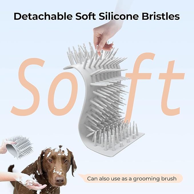 - Gentle Care - The 157 dense soft silicone bristles made from food-grade material provide a gentle and comfortable cleaning experience for your furry friend. The detachable bristles can also be used as a grooming brush during bath time.