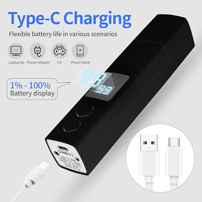 - 【Clear Display】: The built-in display of the dog nail clippers for large dogs can clearly display the current battery power (1%-99%) and speed gear. You only need to long press to switch the display, which is simple and convenient to operate. USB charging design, can be used continuously for 2 hours after charging for 3 hours, say goodbye to the trouble of traditional batteries.