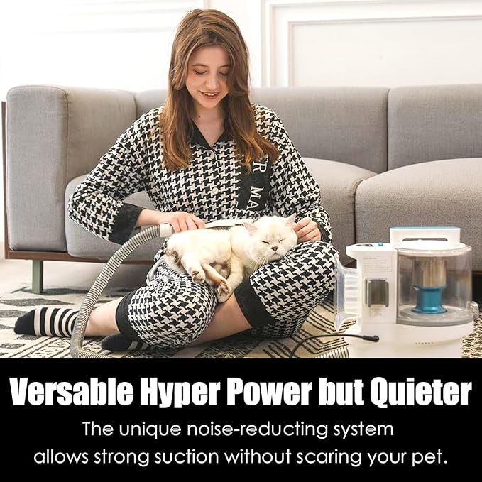 - 【Low Noise Technology】With cutting-edge noise reduction technology, PROMOMO operates at only 52dBA, effectively safeguarding your pet's sensitive hearing. Choose from 3 adjustable suction levels, allowing novice pets to gradually adapt. We recommend using our grooming brush on your pet before trimming to familiarize them with the process. Treat your pet to some snacks to ease any nerves caused by the vacuum noise, ensuring a more enjoyable grooming experience.