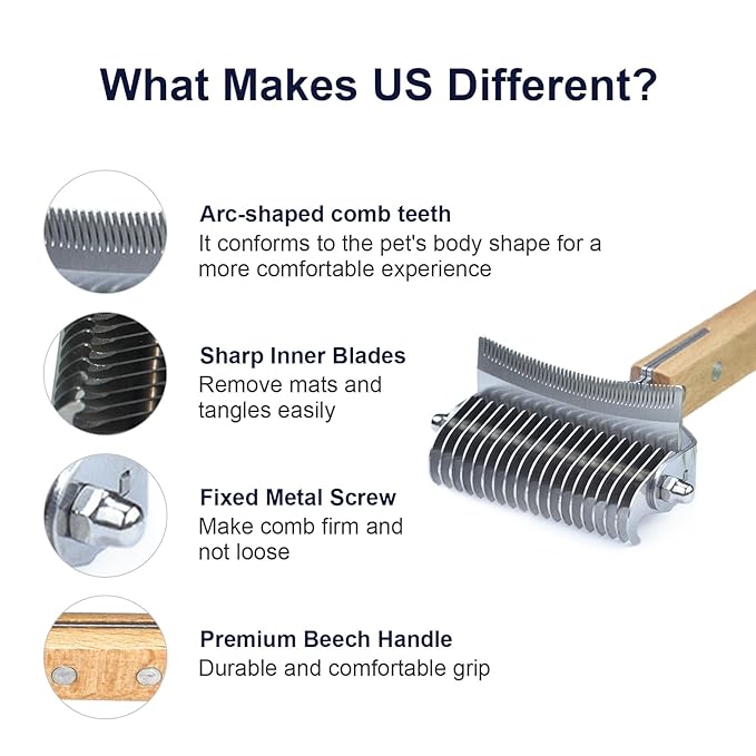 - SAFE & ERGONOMIC DESIGN: Featuring rounded blade tips and an ergonomic handle, our comb ensures a safe and comfortable grooming experience for both you and your pet. Ideal for long-haired and short-haired breeds alike