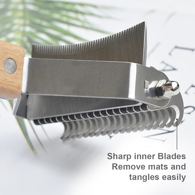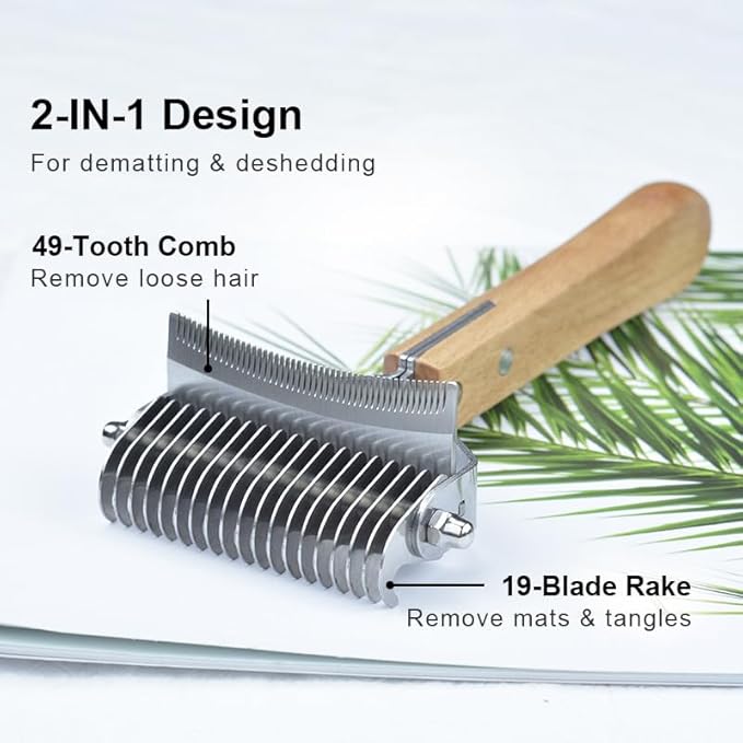2 in 1 Dogs Cats Detangler Brush,Dematting Comb & Undercoat Rake for Dogs,Efficiently Detangling Shedding Loose Hair & Matted Fur, All Long Haired Pet