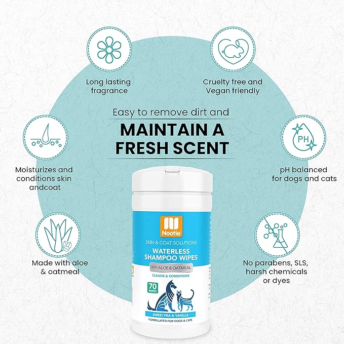 - VALUE PACK - 210 COUNT: Nootie Waterless Shampoo Wipes are the easy solution to keep your pet fresh and smelling good between baths!