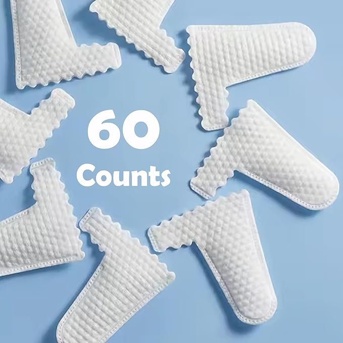 - Secure Finger Design: Features a second finger ring for a secure fit, preventing slipping during use. One size fits all. Pack includes 60 disposable wipes.