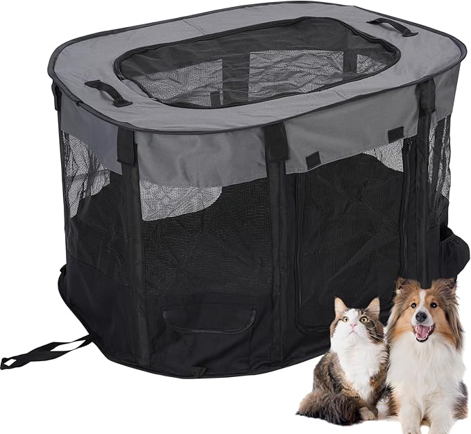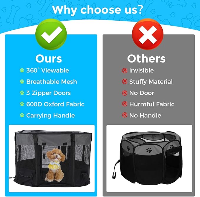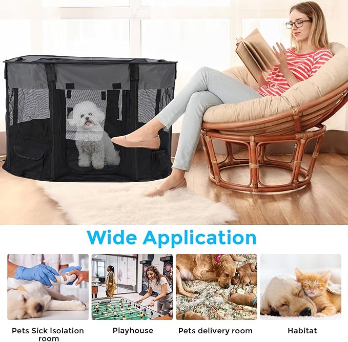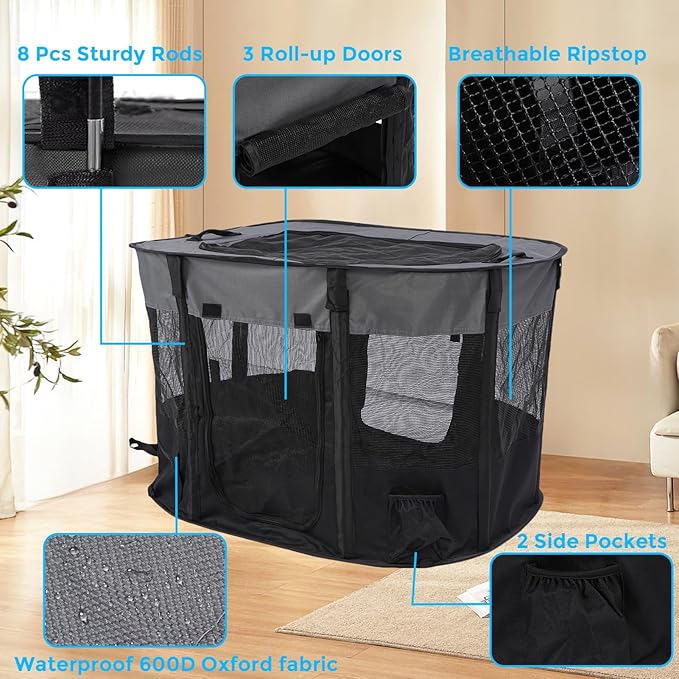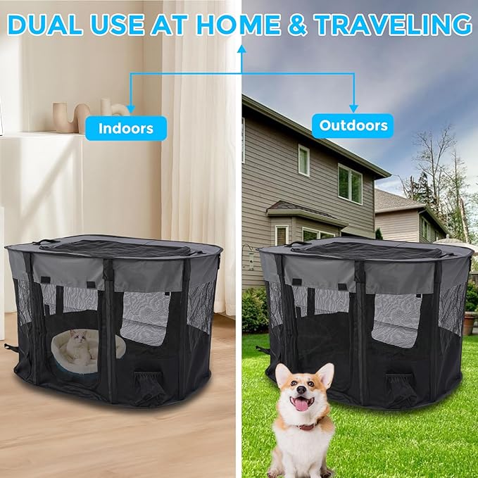 - Convenient Storage Pockets:With two side pockets, this pet playpen offers extra storage space for your pet’s essentials such as toys, treats, or leashes, helping you stay organized and prepared on the go.