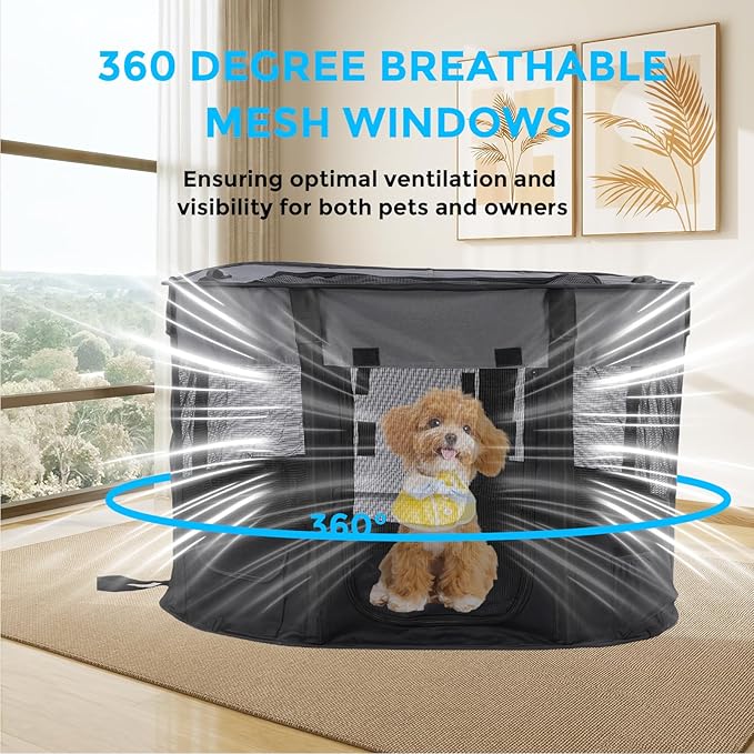 - 360° Mesh Windows:The pet playpen features a unique 360-degree mesh window design, offering excellent ventilation and visibility. This helps reduce your pet’s anxiety and allows you to keep an eye on them during travel or outdoor activities.