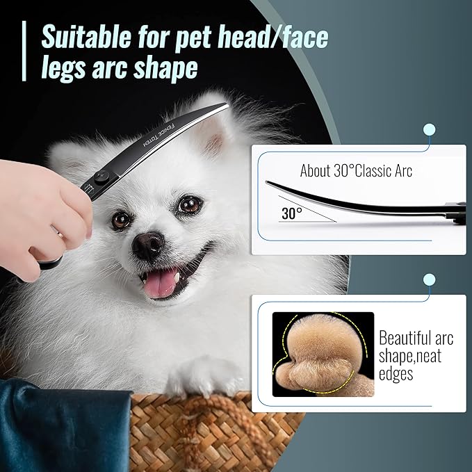 Fenice Dog Curved Grooming Scissors 8.0" Pet Shears Made Of Japanese 440C for Trimming Dogs Cats and Other Pets Face and Paws Black