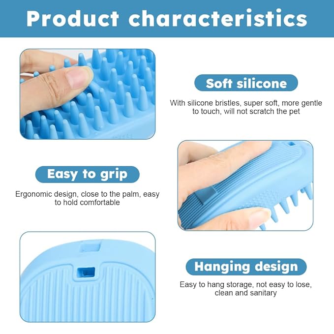 - 【SILICONE BRUSH】Dog bath brush is made of silicone bristles, super soft, and evenly distributed, which provides a more gentle touch and will not scratch your dog, allowing your pet to enjoy a very comfortable shower.