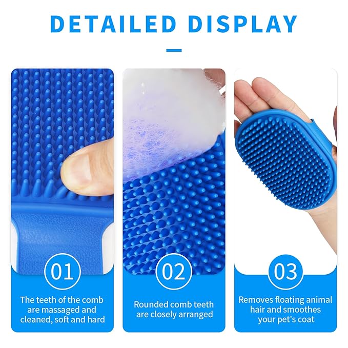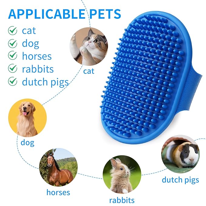 - 【EFFICIENT CLEANSING】Multi-zone bristle clusters create rich lather that reaches dense fur layers. Flexible rubber nodules dislodge debris without scratching skin. Curved surface design mimics professional groomer's hand motion