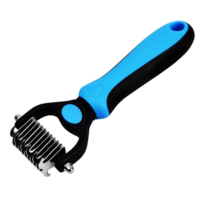 Stainless Steel Pet Dematting Comb Double-sided Shedding Comb for Dogs and Cats, Pack of Black and Blue, Sold Individually