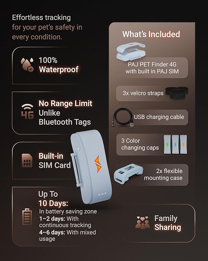 - LIVE TRACKING ANYWHERE, ANYTIME: Keep track of your pet’s location in real-time using the PAJ GPS Tracker for Dogs. This 4G GPS collar tag ensures you always know where your dog is, with worldwide coverage and precise, live tracking via the app for Android and iOS.