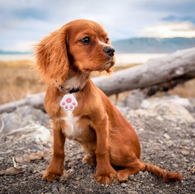 - DESIGN: Paw print-shaped dog collar tracker with multi-colored options for easy visibility and style