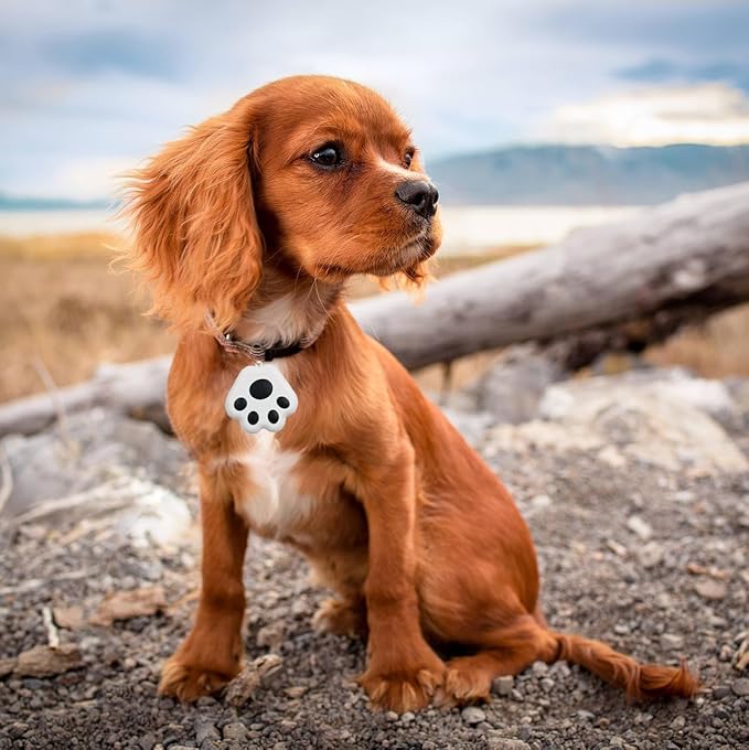 - DESIGN: Paw print-shaped dog collar tracker with multi-colored options for easy visibility and style