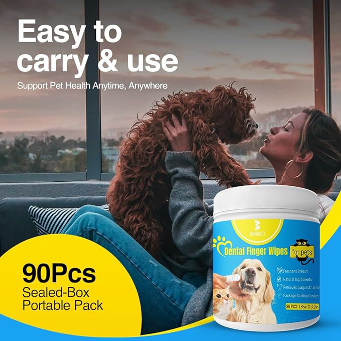 - Fresh Breath on the Go: Bandvet's teeth cleaning wipes work as a dog breath freshener, promoting oral health and keeping bad breath at bay with every swipe.
